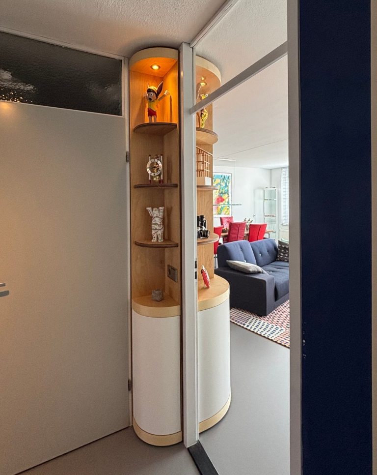 At OHX design, we believe that every space should reflect both functionality and beauty. For this project, we transformed the entrance by creating a thoughtful niche seating area for slipping on and off shoes, while also ensuring coats are hidden away in a discreet yet accessible space. This Niche is painted in a deep, dark blue (RAL5002), this helps maintaining a clean and organized aesthetic space.